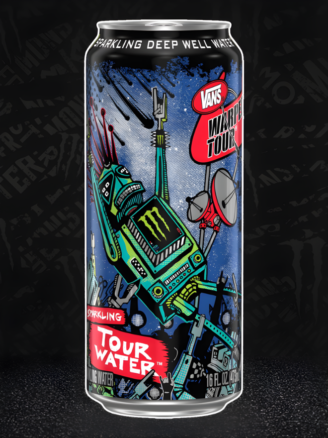 È acqua, quindi ovviamente ci sono ZERO calorie, ZERO zucchero, ZERO energia... Nient'altro che acqua potabile pura, Frizzante. Stesso stile di vita da mostro tosto in una lattina, SOLO ACQUA – Bevi la vita del tour.
